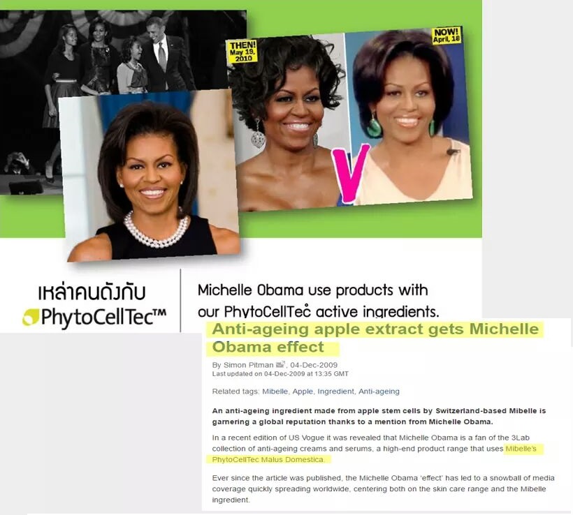 Michelle Obama used products with apple stem cells to diminish her wrinkles and rejuvenate her skin. The Unique effectiveness in anti-ageing and activating cell regeneration has made the product popular among celebrities.